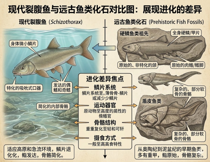 小数数幸存者: 比如现时的裂腹鱼,它们通过极致的进化,脱掉了细鳞,放慢了代谢,才强迫在严寒中活了下来。