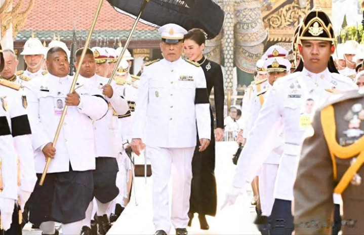 泰王每一次出行,排场可谓是拉满了。大量的侍卫,还有追随为国王和王后撑着华盖。玛哈国王穿戴孤苦白色制服,戴着帽子,固然照旧73岁了,然则这么的服装照旧特地有范儿的。