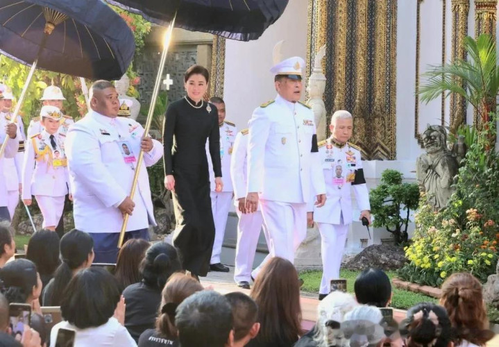 3月3日,泰王玛哈携苏提达王后一同赶赴大王宫的玉梵宇主抓2026年的浴佛庆典。苏提达王后前一段本事独自赶赴米兰冬奥会,可谓是气候无穷。而此次跟随泰王亮相,亦然她归国后的第一次亮相,不外不仅王其后了,新妃欧拉弄也来了。
