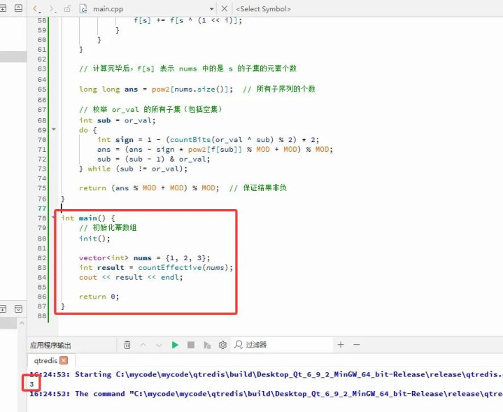 咱们用容斥旨趣陈列 total_or 的通盘子集,策画出通盘无效子序列的数目。