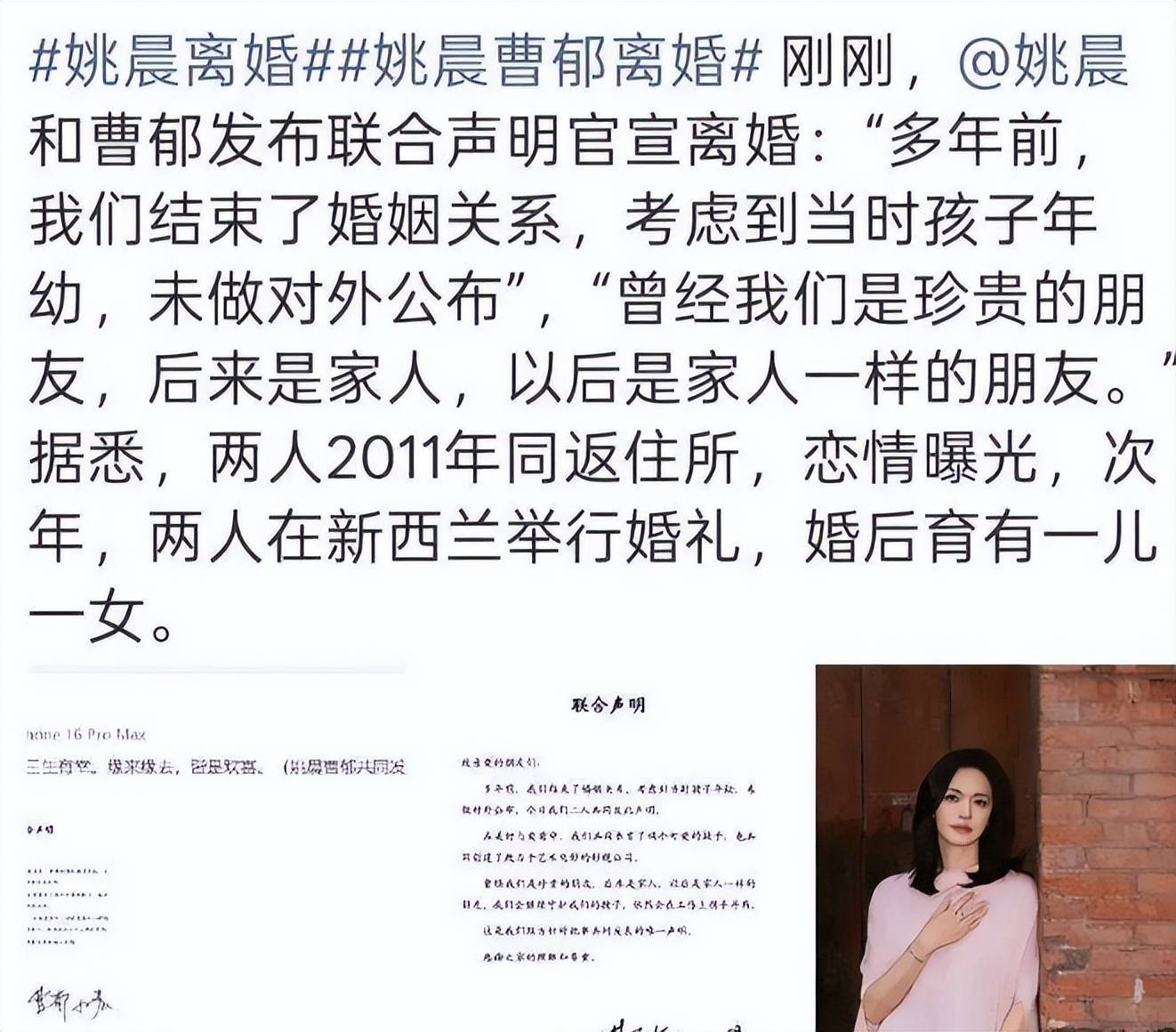 易游国际 姚晨仳离声明引爆全网!官媒痛批失掉“官宣”,背后真相令东谈主唏嘘
