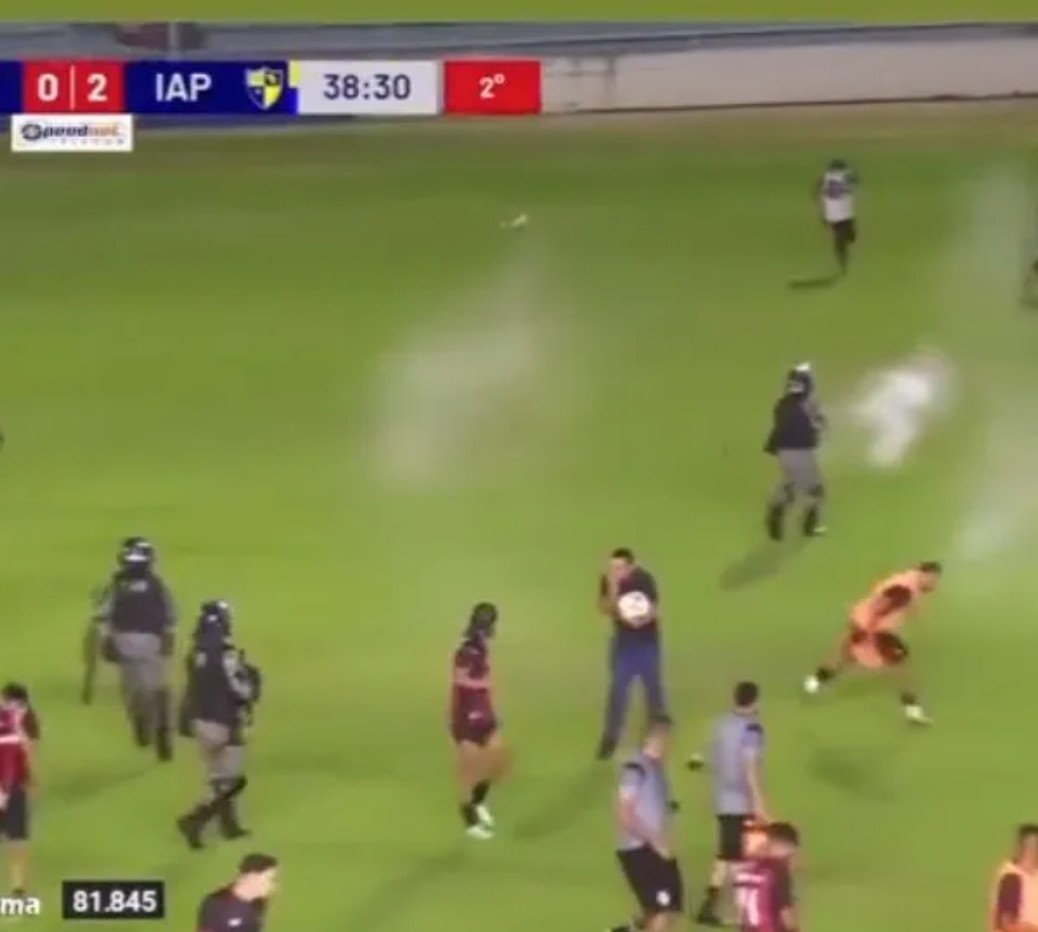 巴西莫托俱乐部的球迷冲进球场,紧迫了敌手伊亚佩球员,随后警方介入制止。