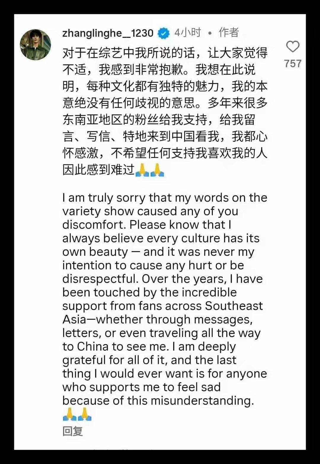易游官网 张凌赫言论引爆东南亚!谈歉被骂暗昧,双标操作遭全网怒批