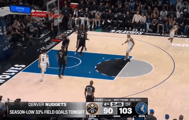 虎扑04月24日讯NBA季后赛,掘金客场96-113不敌丛林狼,系列赛大比分1-2过期。