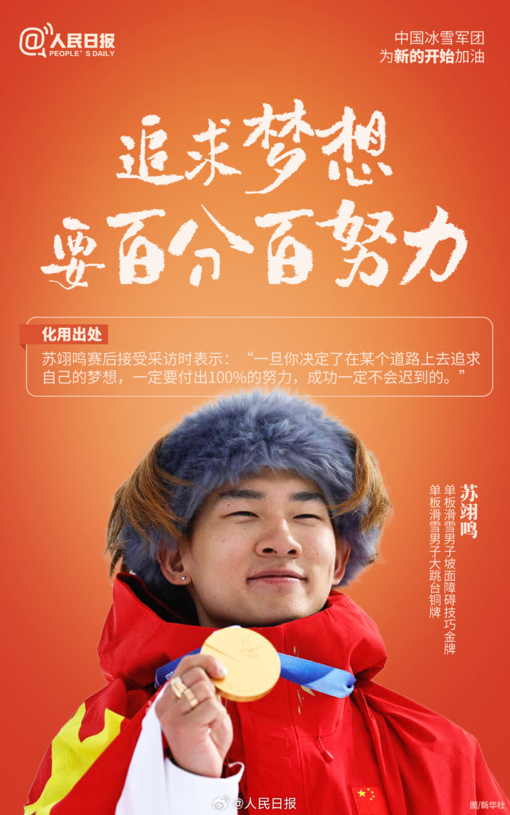 勇敢追梦、自信安谧、自我杰出、乐不雅广博……今天是马年第一个责任日,这组冰雪健儿的精神状况,