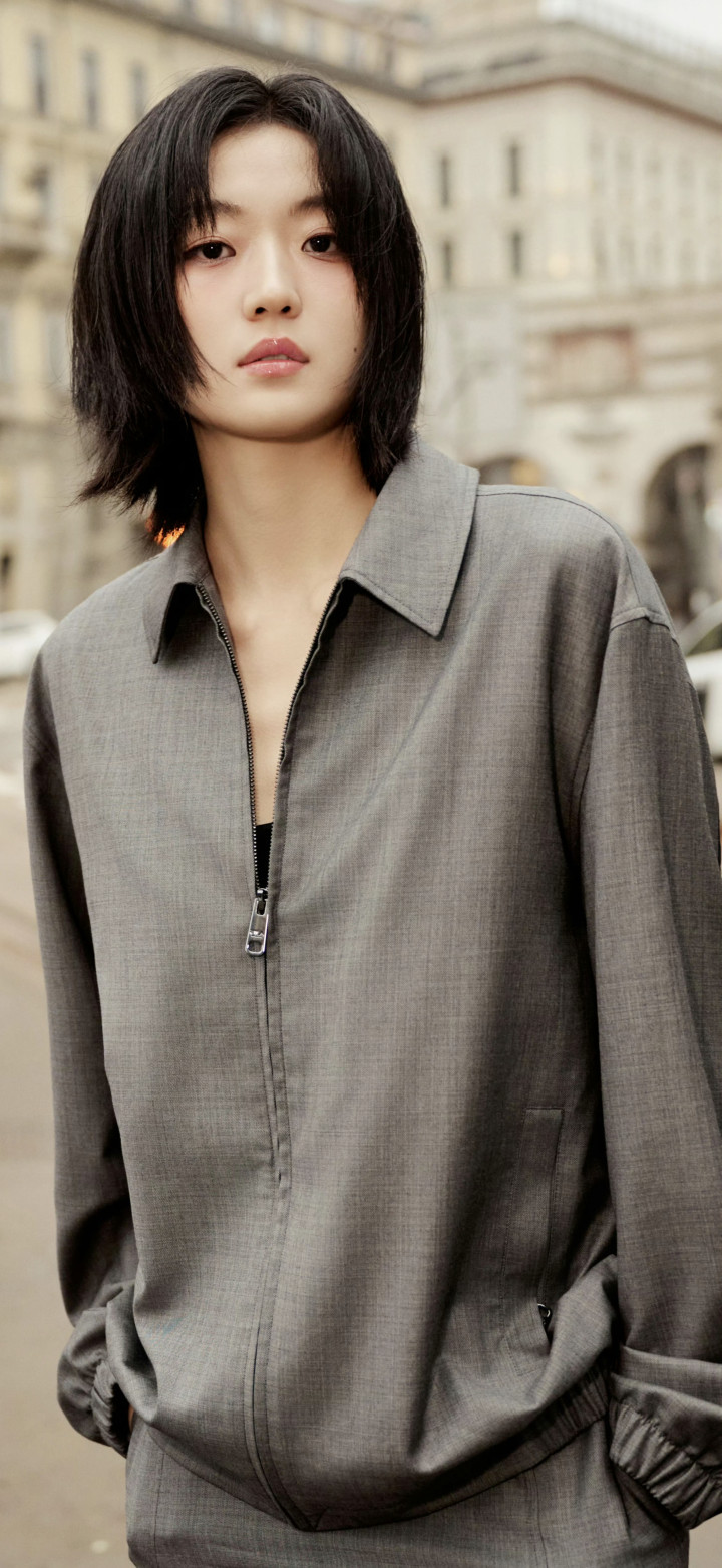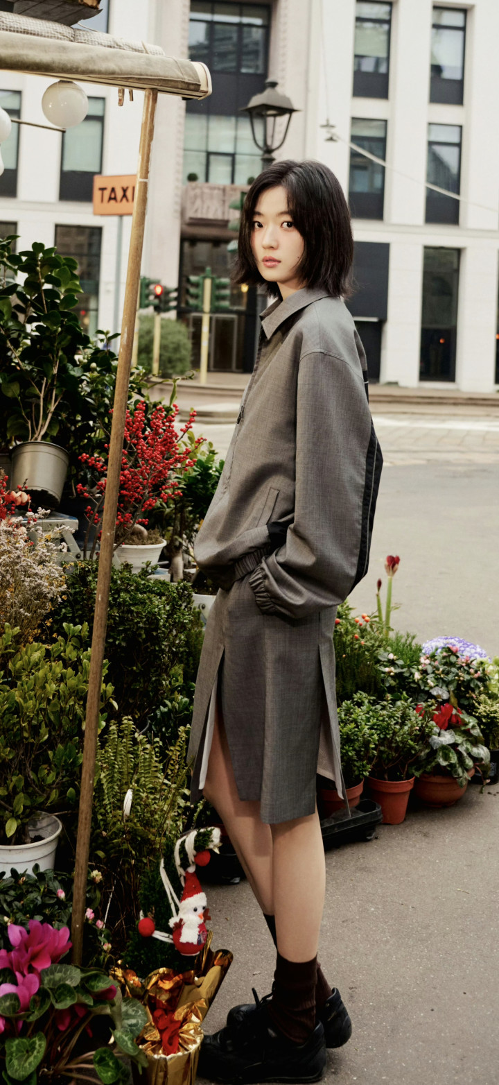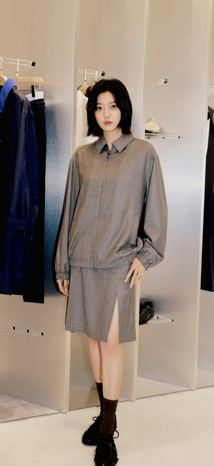 孙千大长腿好意思图,孙千身着定制深灰套装,