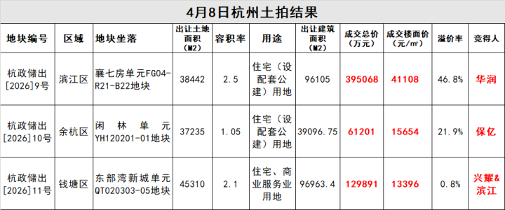 此外,余杭区闲林板块的低密宅地由保亿竞得,钱塘区下沙商住地则被深耕板块的兴耀&滨江补仓。